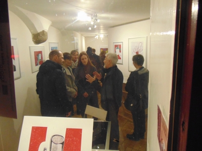 Impressionen anlässlich der Vernissage am 22. März 2019 und Interaktion durch Drucktätigkeit während der Ausstellungszeit